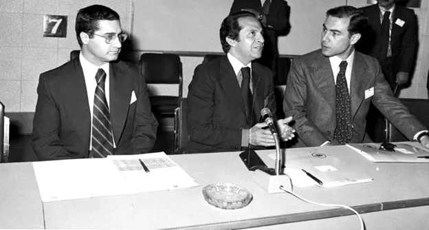 Figure 7.1—From left to right Farhad Saba, Manouchehr Ganji, and Reza Ghotbi at the First Conference on the Application of Television in the Educational System of the Country.