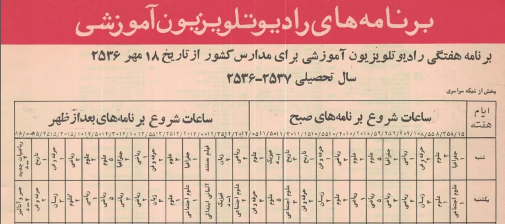 Additionally, to provide classroom teachers with greater opportunities to align their lessons with broadcast content, NIRT decided to rebroadcast the daytime programs between midnight and 8 AM via its national microwave network. Previously unused during these hours, this transmission resource became available since Networks One and Two typically concluded their broadcasts at midnight. The overnight rebroadcasts enabled local stations to record and replay the programs within their coverage areas, giving teachers a better chance to synchronize their lessons with the televised content. As a result, a significant portion of NIRT’s 24-hour transmission capacity was dedicated to educational programming. Some proactive local NIRT centers, such as Fars, went further by providing schools with videocassette copies of programs, allowing teachers to use these videos on demand as they deemed necessary.